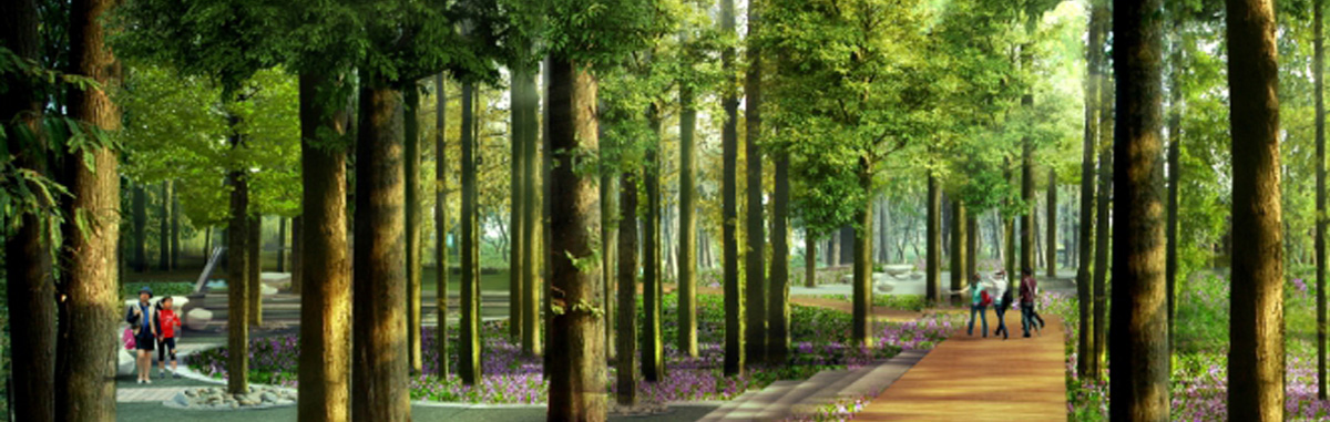 香杉動(dòng)影、杉林花溪:該兩個(gè)景區(qū)位于金地自在城東側(cè)大坂湖直江以東,群賢路南北兩個(gè)地塊,總面積約77497平方米。植物配置以水杉、池杉、落羽杉、墨西哥落羽杉為主。該區(qū)設(shè)有健身廣場(chǎng)、石溪嬉水、碼頭廣場(chǎng)、杉林棧道、休息小亭、煙水廊、運(yùn)動(dòng)草坪、聞濤亭、香杉園、公廁、濱水小廣場(chǎng)等景點(diǎn),是人們進(jìn)行林間燒烤、健身活動(dòng)的主要場(chǎng)所。