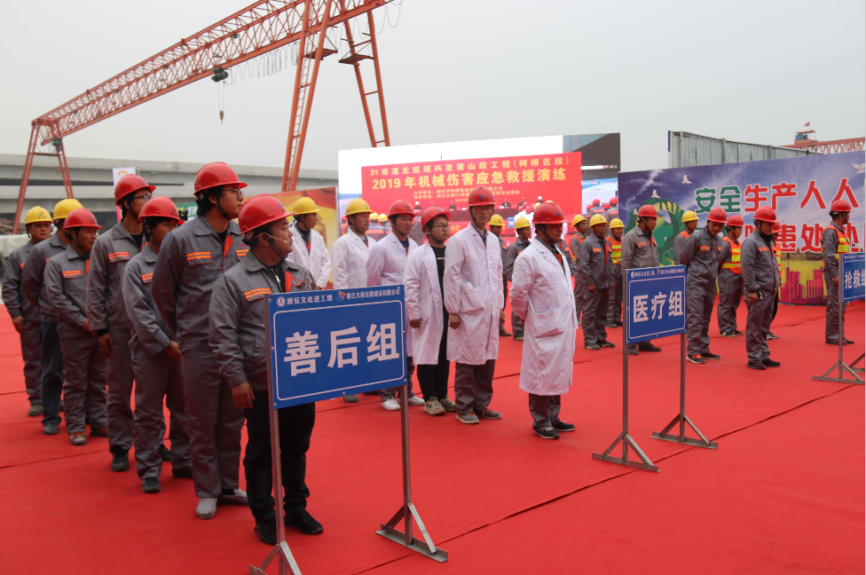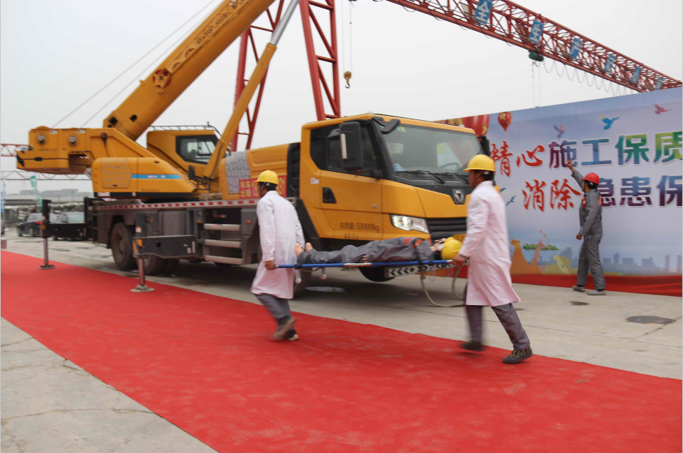 12月17日下午,交通工程機(jī)械傷害應(yīng)急救援演練活動(dòng)在31省道北延紹興至蕭山段工程(柯橋段)第2標(biāo)預(yù)制場(chǎng)順利舉行,區(qū)交通運(yùn)輸局、區(qū)交通質(zhì)監(jiān)站、建設(shè)集團(tuán)相關(guān)部室等代表參加觀摩指導(dǎo)。此次演練旨在進(jìn)一步提高參建人員安全防范意識(shí)、應(yīng)急處置能力以及團(tuán)隊(duì)協(xié)作凝聚力,檢驗(yàn)應(yīng)急預(yù)案的實(shí)用性和可操作性,全面提升應(yīng)對(duì)突發(fā)安全事故的現(xiàn)場(chǎng)處置能力。