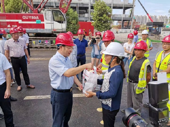區(qū)、鎮(zhèn)領(lǐng)導(dǎo)高溫慰問工地一線建設(shè)者