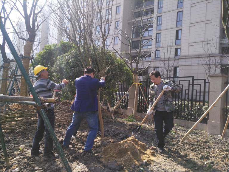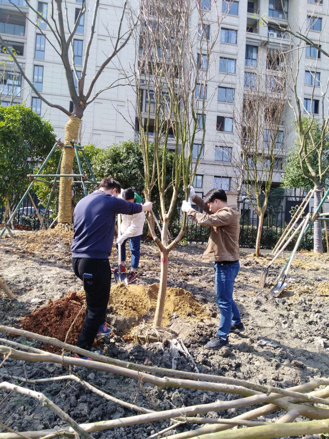 雖是春寒料峭,但植樹活動(dòng)現(xiàn)場卻呈現(xiàn)出一派熱火朝天的景象,大家分工明確,密切配合,有的揮鍬鏟土、有的扶樹填土、有的培土澆木,忙的不亦樂乎。經(jīng)過一個(gè)多小時(shí)的勞動(dòng),紫薇、茶花、桂花、蠶絲海棠等100余株樹苗在周邊綠化帶里“安家落戶”,為時(shí)尚紡城再添新綠。