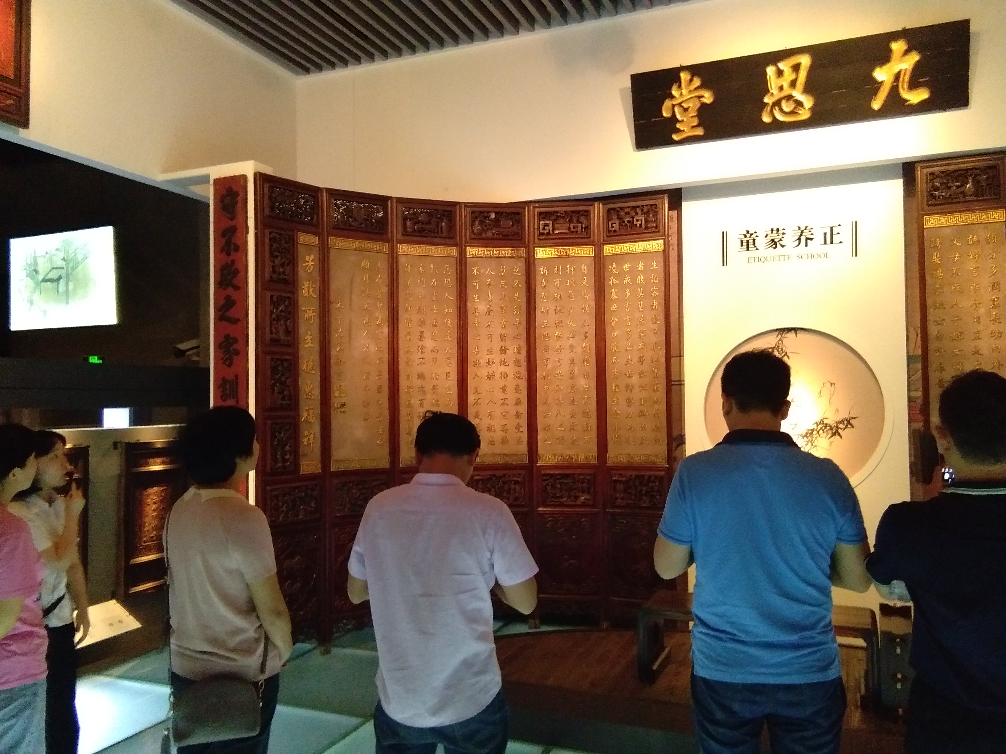 家訓館以“小家訓,大規(guī)矩”為主題,以“修齊治家平天下”為核心,展出了全國各地350余件家訓木刻雕板,內(nèi)容涉及孝、悌、忠、信、禮、義、廉、恥等方面,內(nèi)涵深刻,足以為明鑒,足以為警戒,對當下“學家訓、立家規(guī)、樹家風”有著重要的范導意義。家訓館中豐富的內(nèi)容和生動立體的展示形式,深深吸引了每一名黨員。