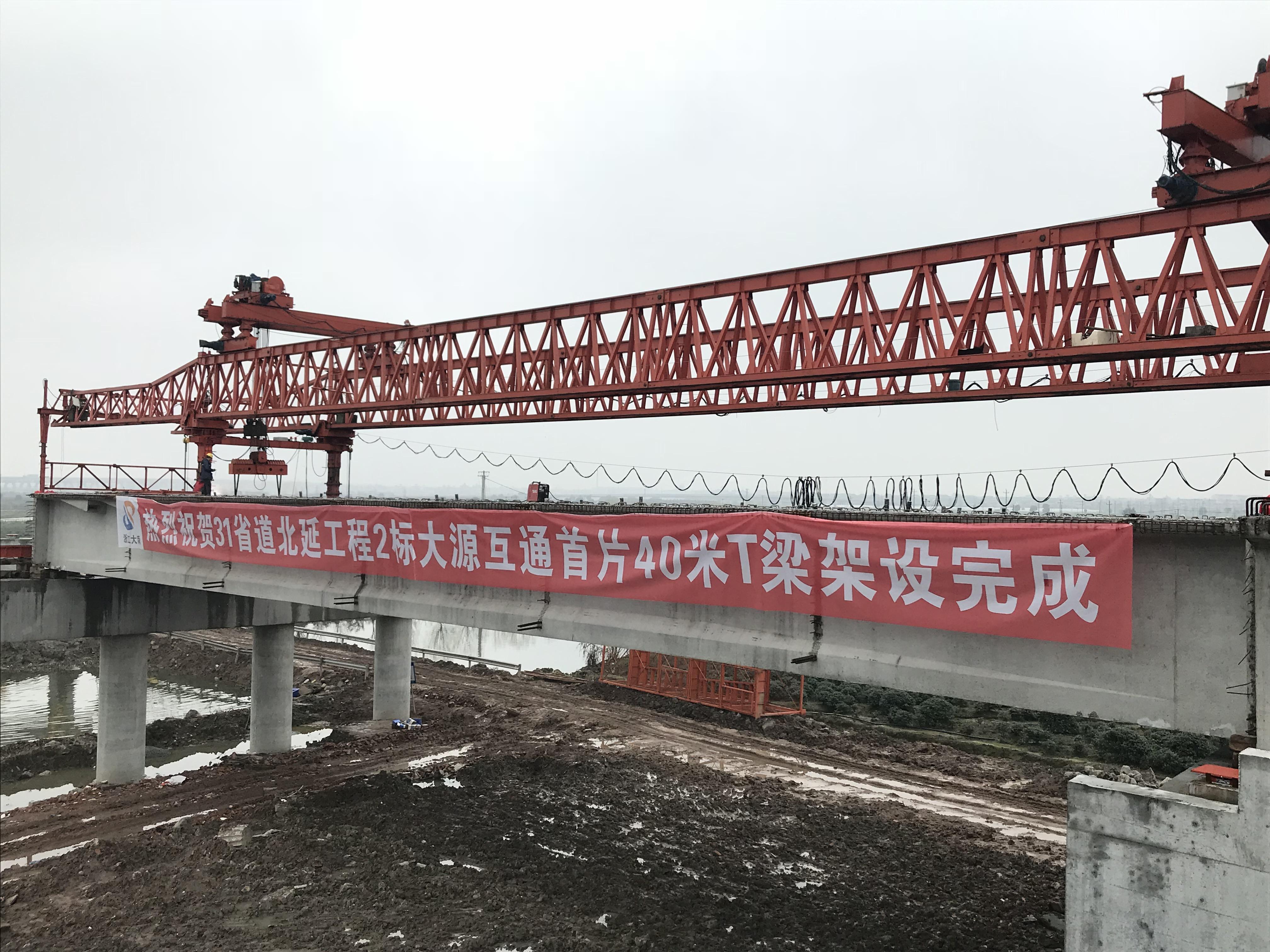 3月8日上午,31省道北延工程開(kāi)始進(jìn)行大源互通主線(xiàn)橋右幅上跨丁港江梁板架設(shè),8點(diǎn)28分,在現(xiàn)場(chǎng)施工人員精準(zhǔn)操作下,一片長(zhǎng)40米,高2.5米,總重130余噸的預(yù)制T梁穩(wěn)穩(wěn)落下,標(biāo)志著本項(xiàng)目首片40米預(yù)制T梁順利架設(shè)完成。