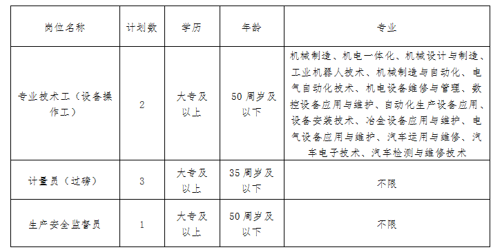 招聘崗位及要求